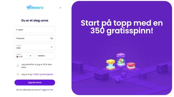For Ä begynne Ä spille hos Winnerz, Äpner du registreringsskjemaet og fyller inn opplysningene dine nÞye. NÄr profilen din er klar, kan du bruke Winnerz innlogging fra toppmenyen pÄ hvilken som helst enhet.